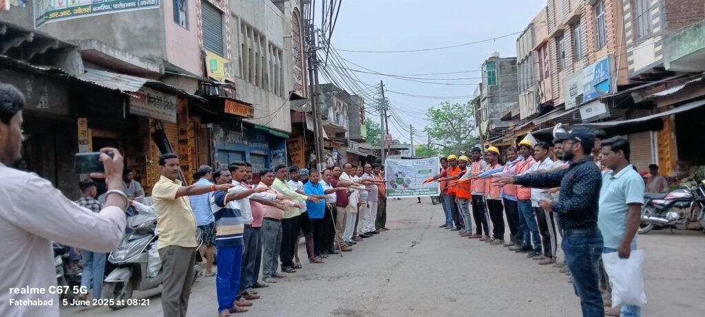 फतेहाबाद/आगरा। विश्व पर्यावरण दिवस के अवसर पर नगर पंचायत फतेहबाद और सहयोगी संस्था भूमि फाउंडेशन द्वारा एक विशेष स्वच्छता एवं शपथ कार्यक्रम का आयोजन किया गया। यह कार्यक्रम गांधी चौक एवं गल्ला मंडी जैसे प्रमुख सार्वजनिक स्थलों पर सफलतापूर्वक संपन्न हुआ।